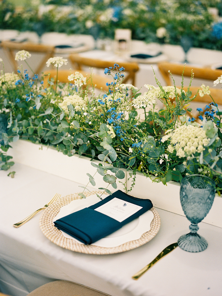 Don’t forget that an accent color on your napkins or a runner can go a long way! Thalia + Colton’s wedding at Hazelwood in PA is a perfect example of this.