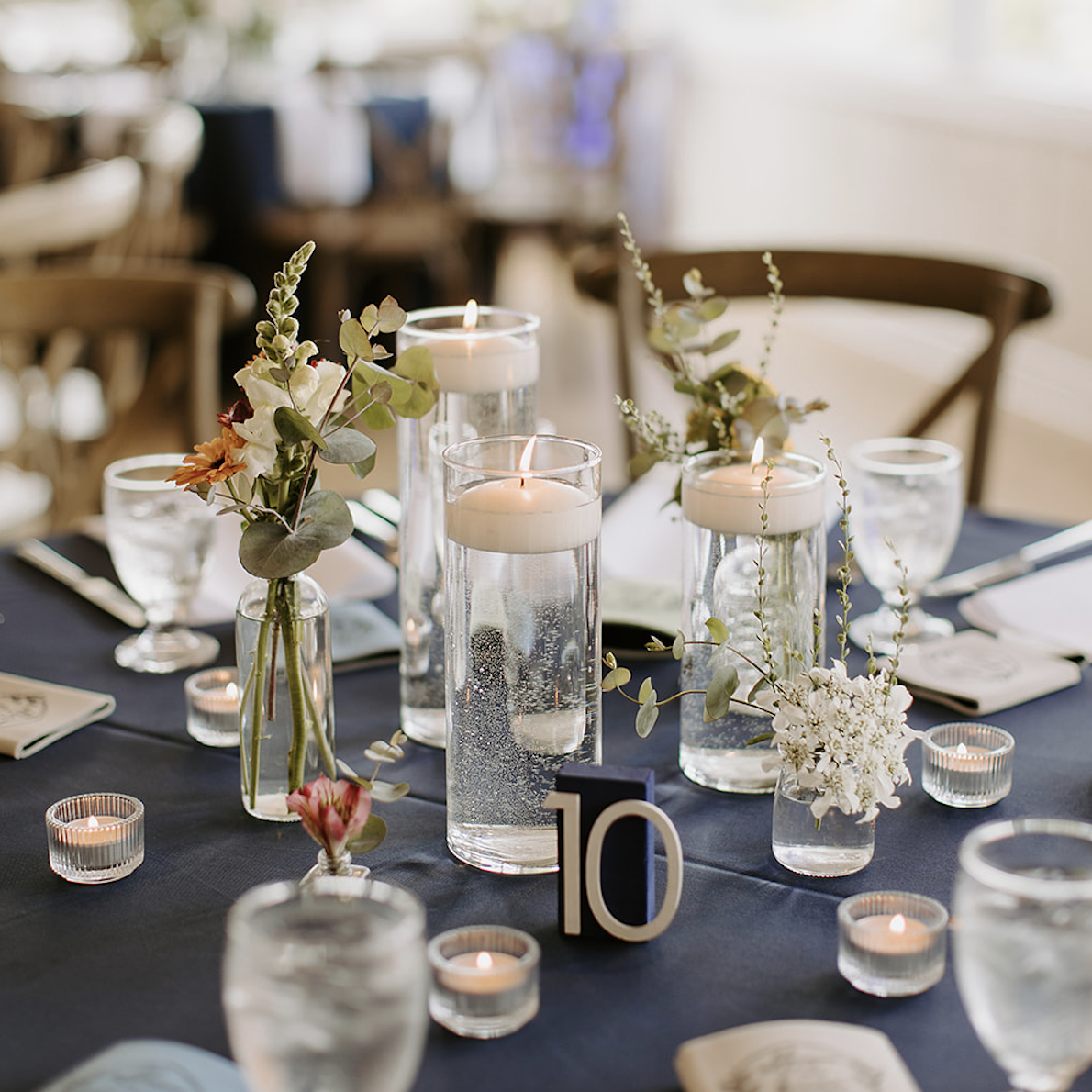 Many clients will use one style of candle on a round table and then another style of candle on a rectangle table.