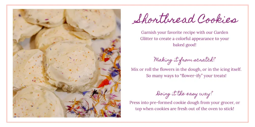Here at the farm, we focus on the natural flavors of our flowers. From color, beautiful blooms, to flavor profile, we have perfected and crafted our petals to add pizazz to any desert, meal, or drink!