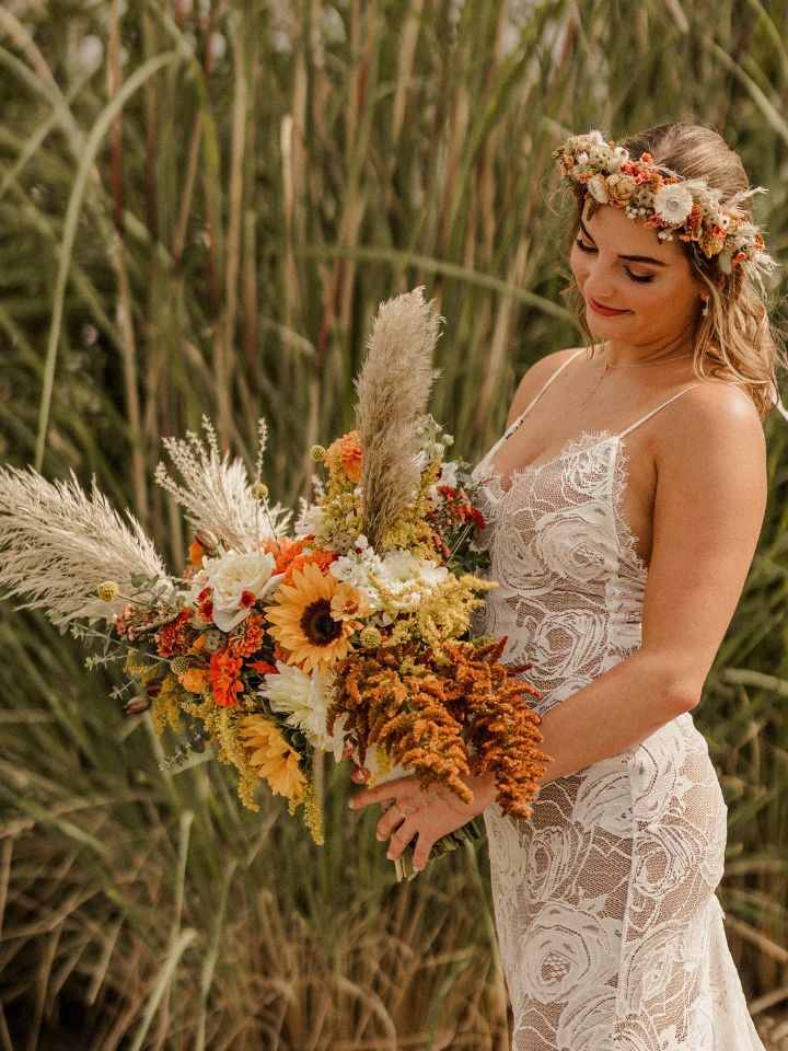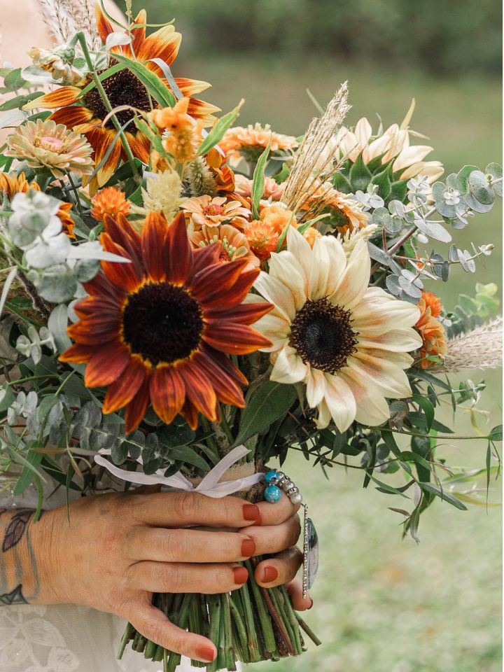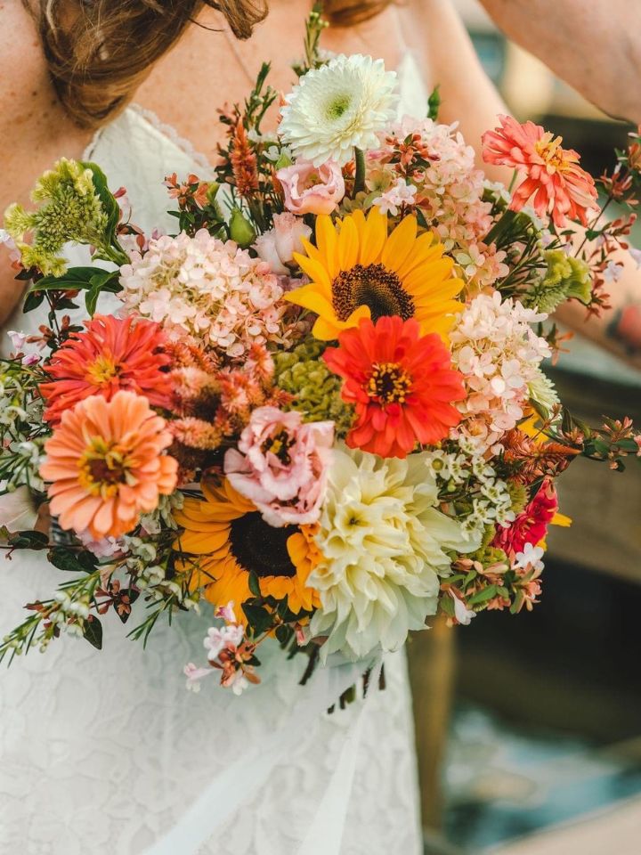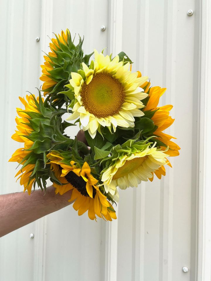 - Large sunflower heads make a statement, while smaller varieties are great for mixing in