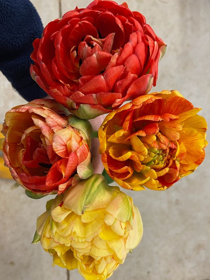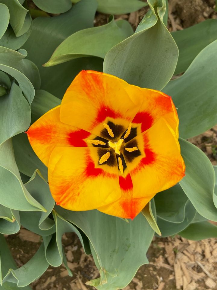 Tulips are one of the earliest blooms we see in the spring! Planted as a bulb in the fall, they overwinter underground and start coming up in March.