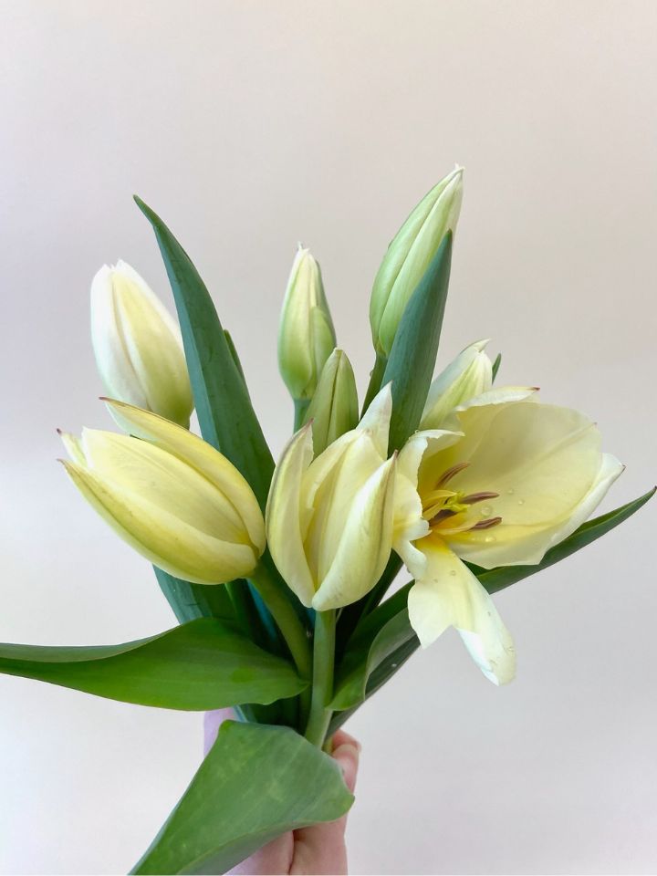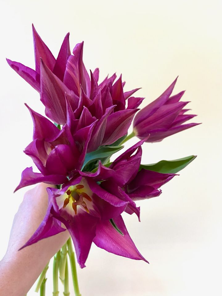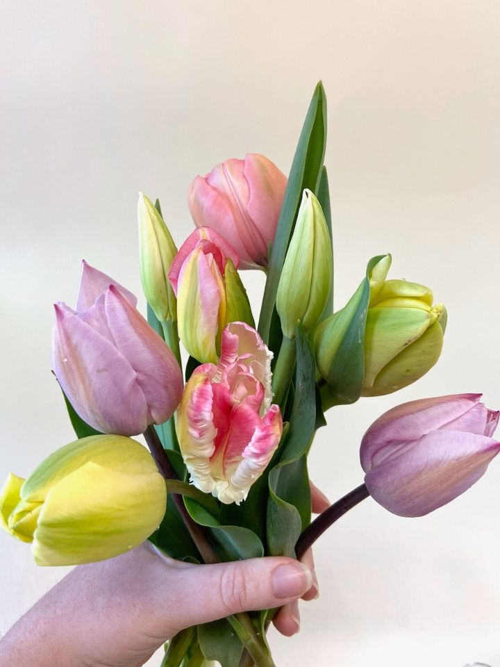 Grown in the millions in the Netherlands, it can be just as and fun to fill your garden or vases with tulips at home! As a cut flower for arranging, tulips are pulled up by the bulb and treated as an annual. In the garden where they aren’t cut, they will come back every year as a perennial.