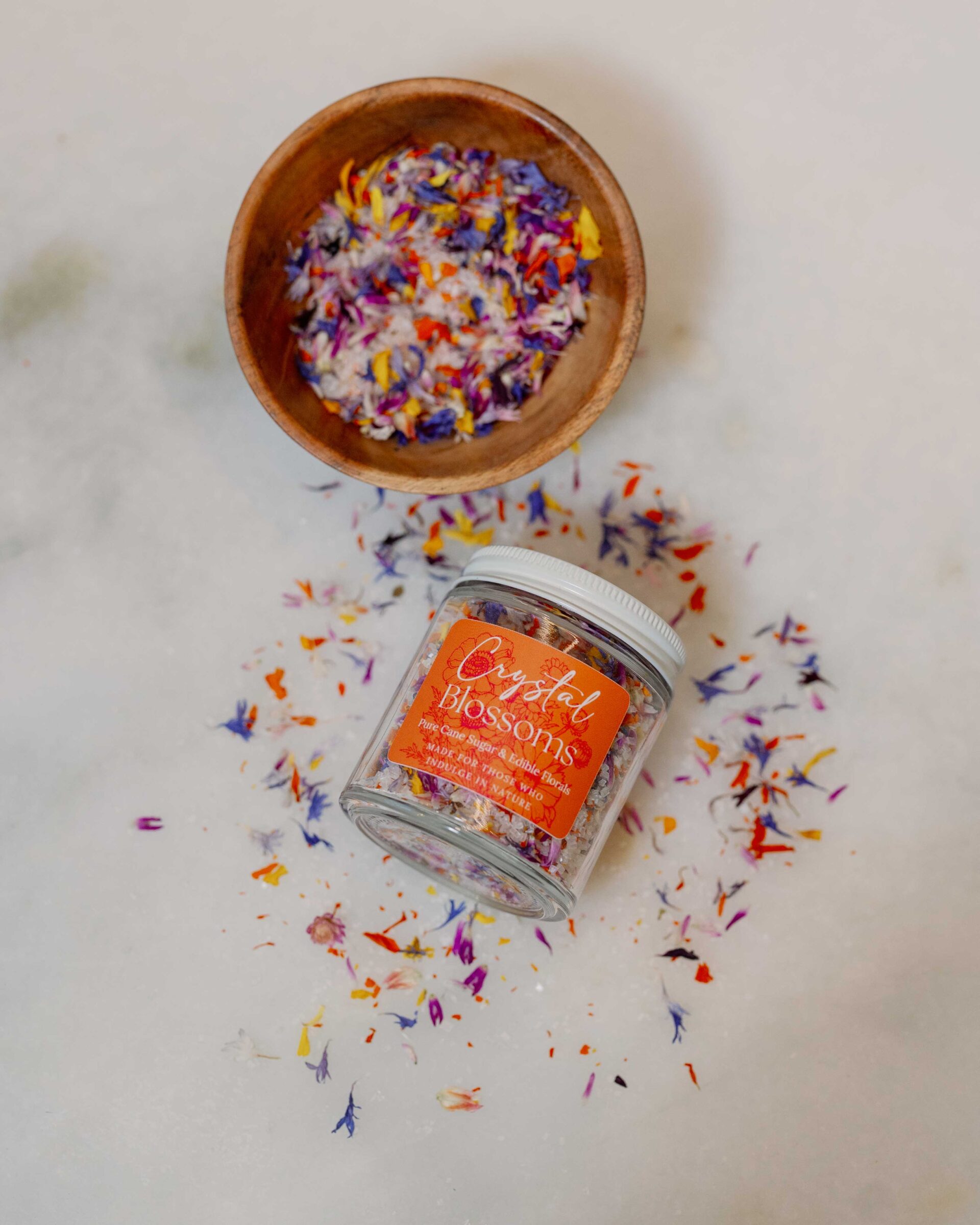 Welcome to the Petal Pantry! Add some flavor + flair to your next meal with our edible flower sugar. Crystal Blossoms is created in small batches by our team right here in Maryland, harvested straight from the fields of our flower farm. Each flower is started from seed by hand, planted and cared for all season long, hand-picked at peak bloom, then dried and separated to become your new favorite garnish!