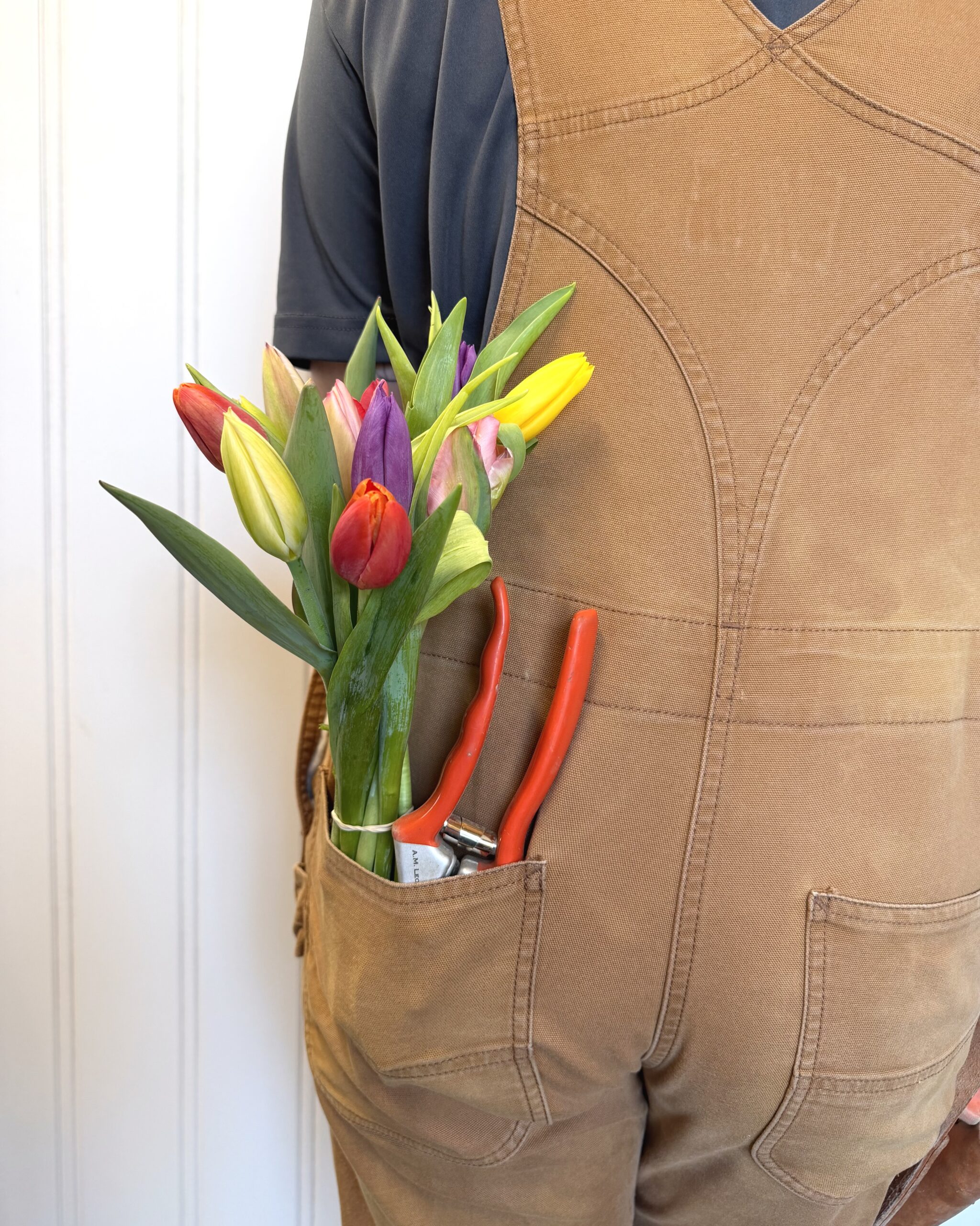 Sometimes the whole row of flowers blooms at the same time, and we have buckets of flowers ready to go!! It’s nice when it coincides with a wedding in the right colors, but other times… we just have too many to use!