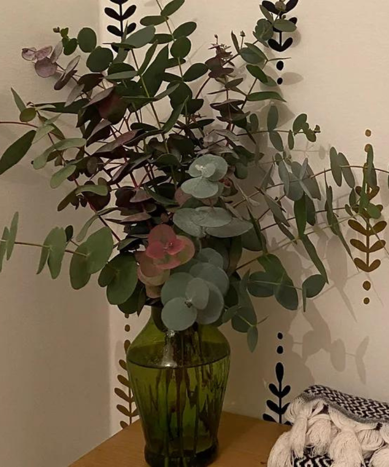 The fresh eucalyptus bundle will arrive wrapped in paper– please place them in water as soon as possible, or hang them up to dry!
