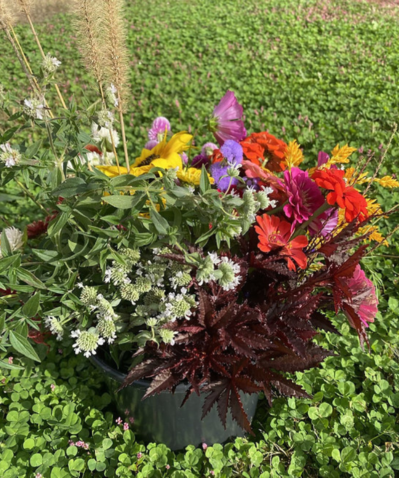 Our flower varieties change seasonally and we can’t guarantee a specific type of floral in your arrangements. We love using our creative eye to choose fresh blooms from our fields for you! If you have a color palette in mind, let us know and we will do our best to accommodate!