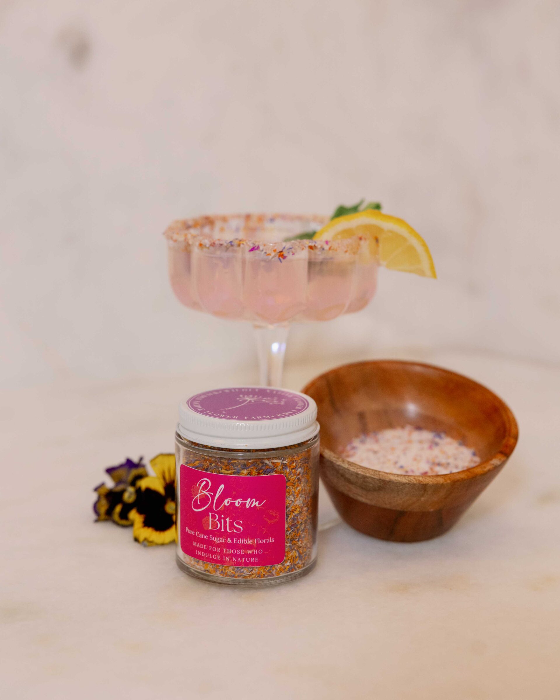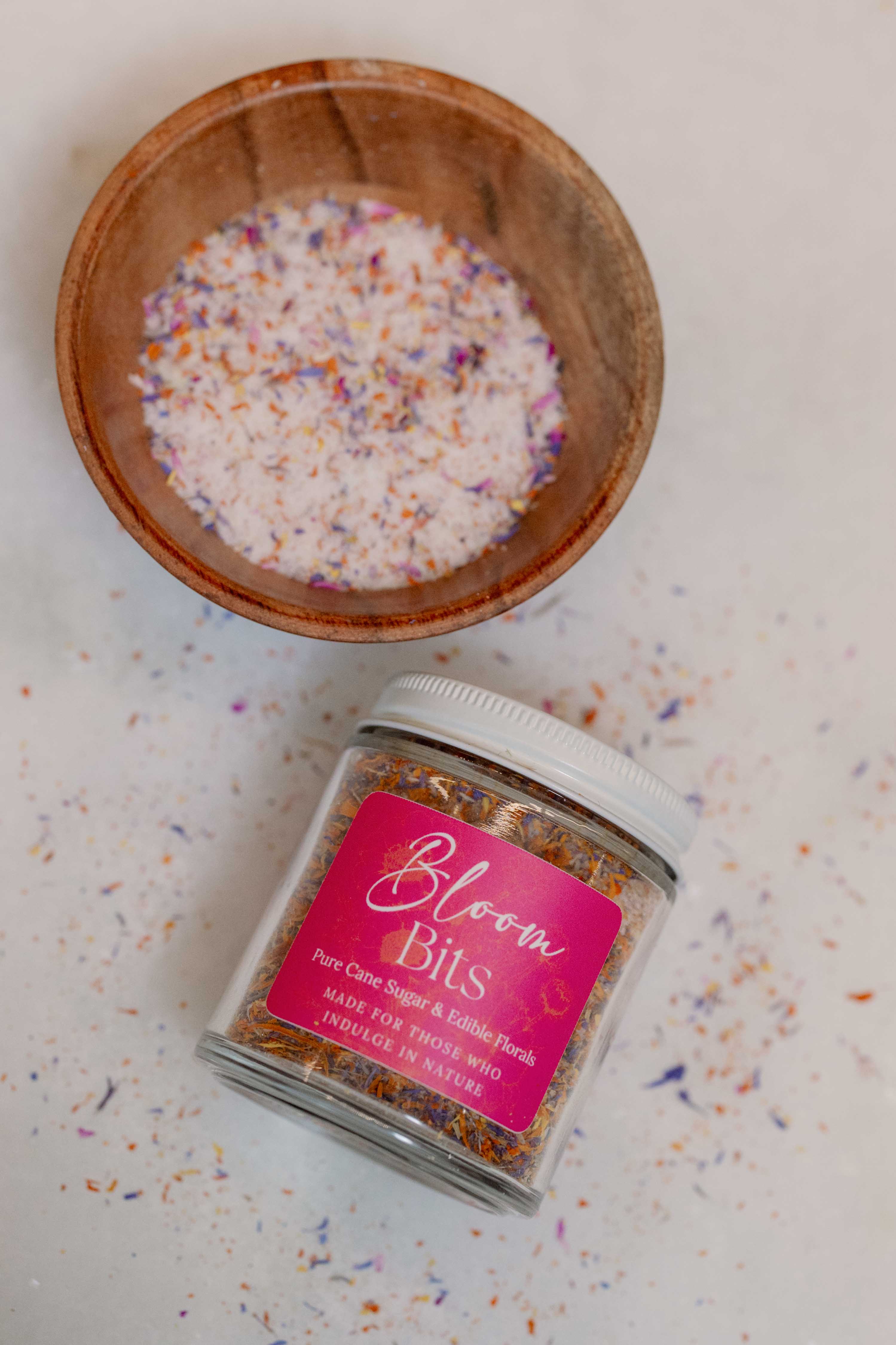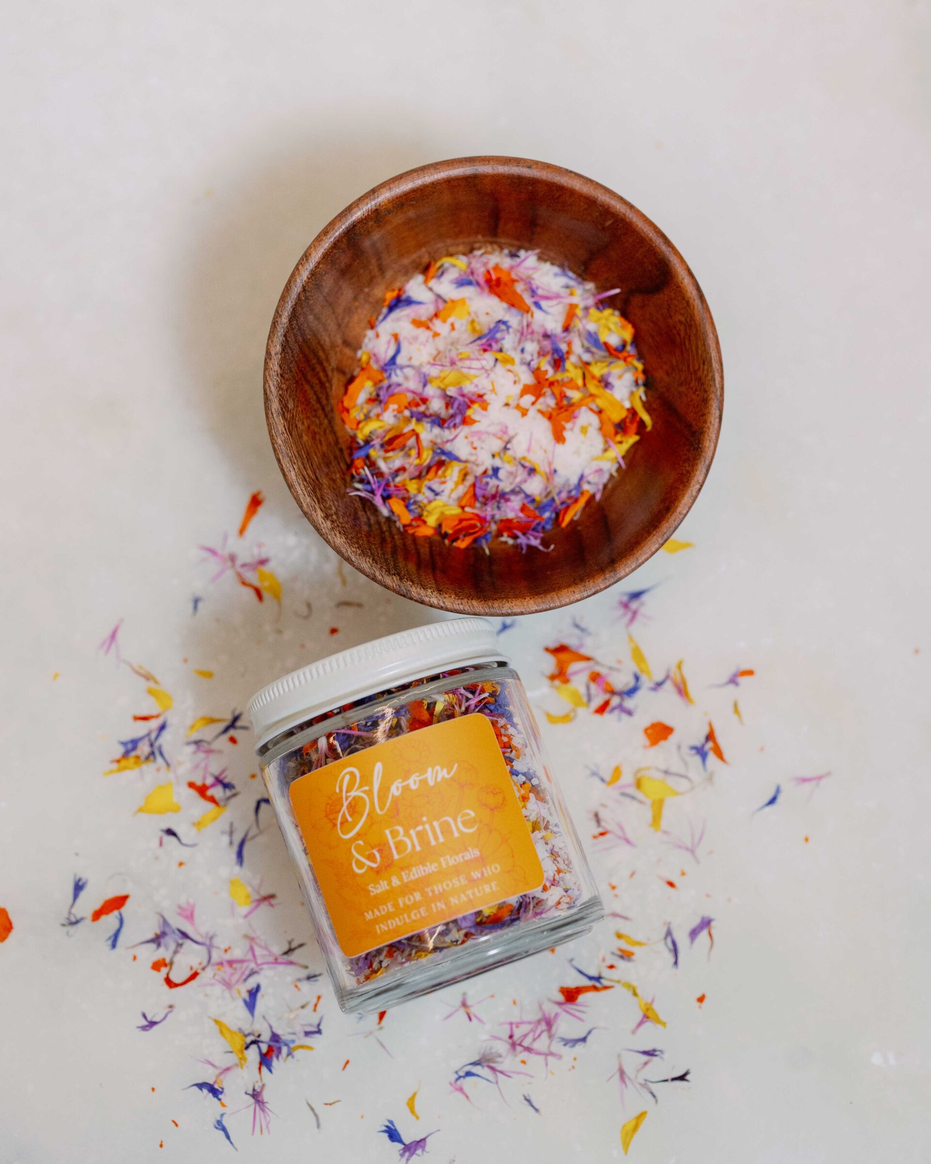 Each glass jar contains a 2 oz blend of calendula, centaurea, marigolds, and gomphrena petals; and either cane sugar or kosher salt.