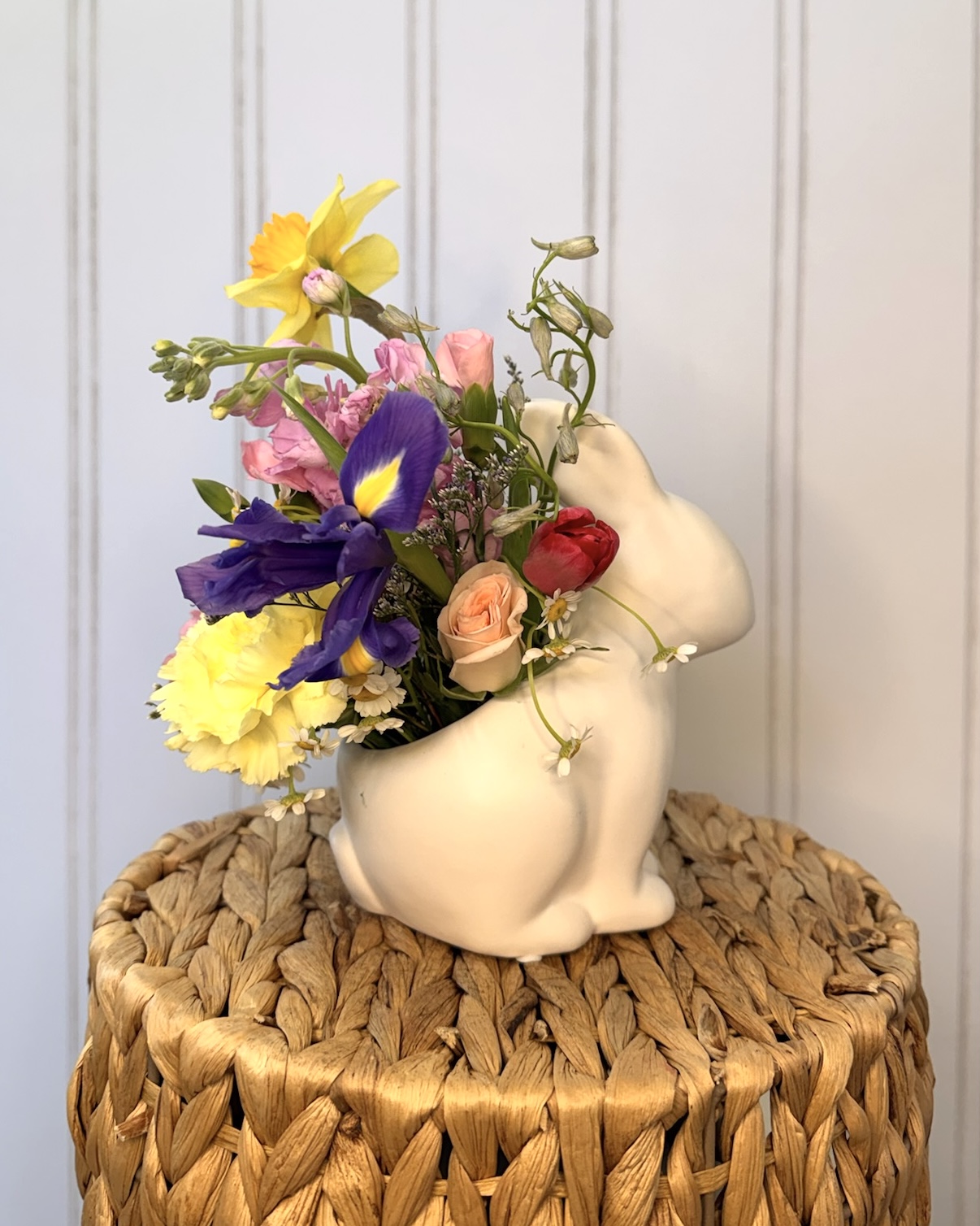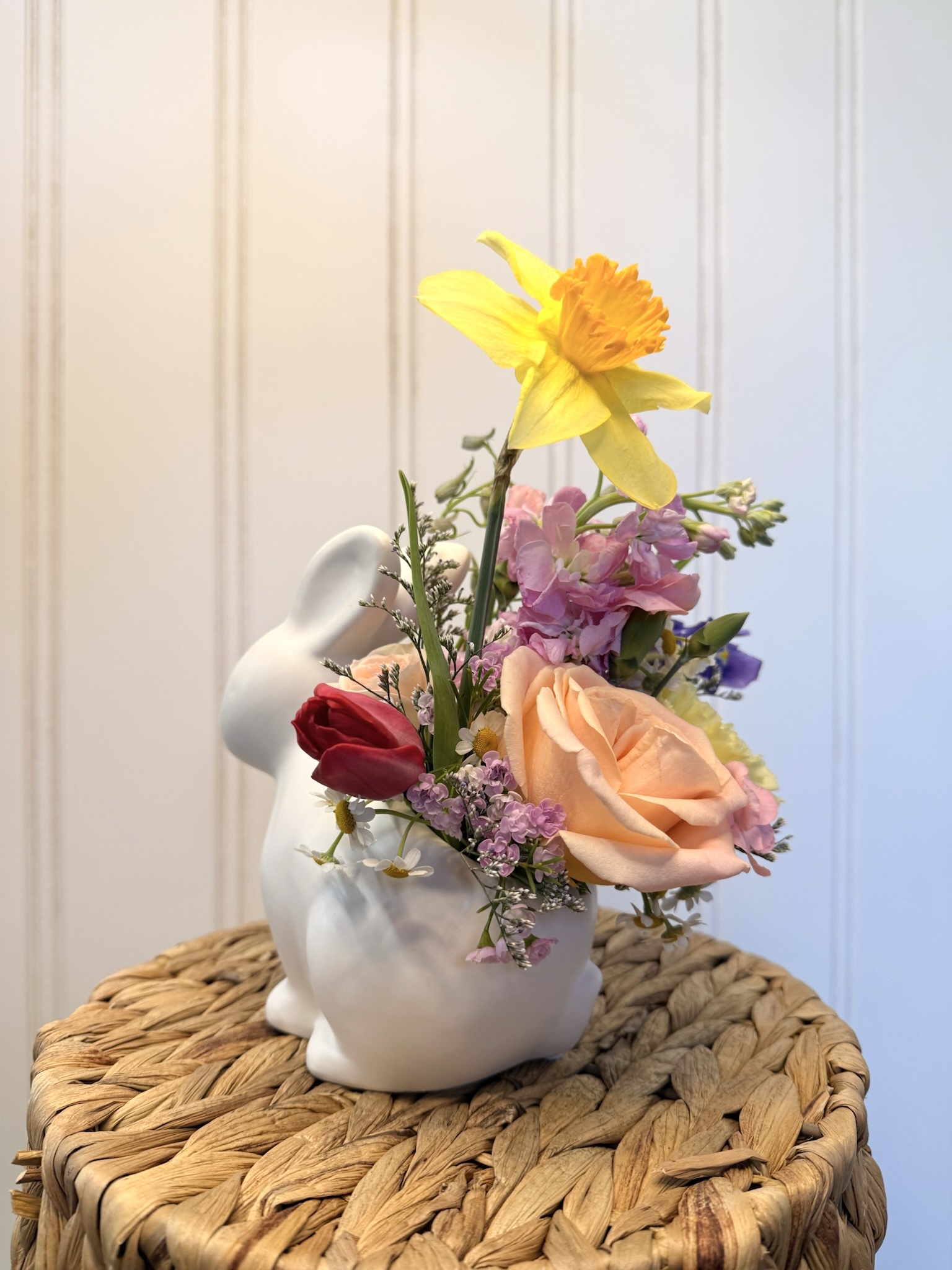 Put a spring in your step with our ceramic Easter bunny floral arrangement!