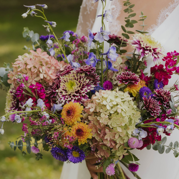 Step into the cozy embrace of fall with our dahlias, pink-tinged hydrangeas, velvety celosia, full range of snapdragons, zinnias, gomphrena, eucalyptus, and more – all tailor-made for your dream Autumn wedding!