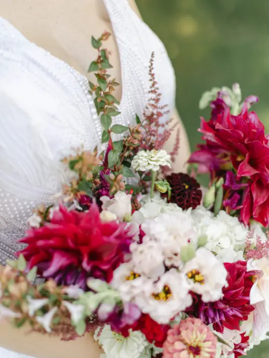 These autumn jewel tone weddings really capture the rich colors and textures of the season – from vibrant and colorful to dark and moody, they echo the brilliance of sapphire blues, emerald greens, and ruby reds.  Our farm grown luxurious blooms in rich, deep hues set the tone for envisioning a wedding day that radiates opulence and celebrates the splendor of the autumn season.