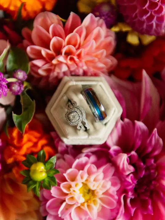 ring detail shot amongst bright and wild florals by wildly native flower farm