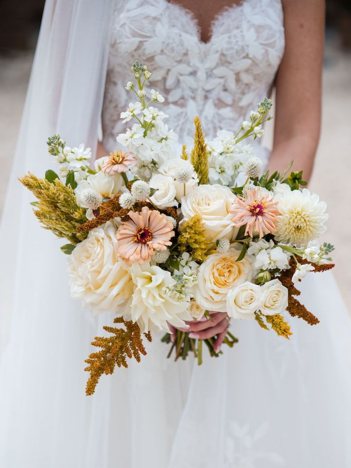 The classic fall color palette, customized to your unique style! Whether you want grasses and dried florals, or every shade of rust imaginable, we’ve got you covered. Inspired by the changing leaves and the warm embrace of fall, explore deep burgundies of celosia, golden yellows of marigolds, sunflowers, and zinnias, and earthy tones that characterize this category. Each bloom is carefully curated to evoke the essence of the season, offering a perfect blend of rustic charm and natural elegance.