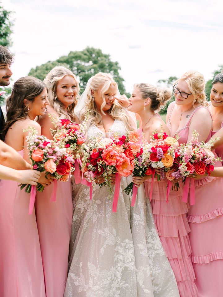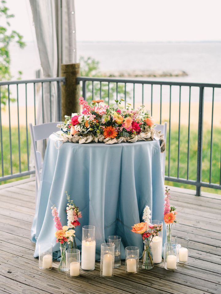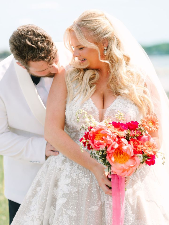 Annie and Al’s unique colorful wedding put our skills to the test but we love a challenge! Their springtime wedding at Kent Island Resort was filled with personality. Annie told us, “I need help…