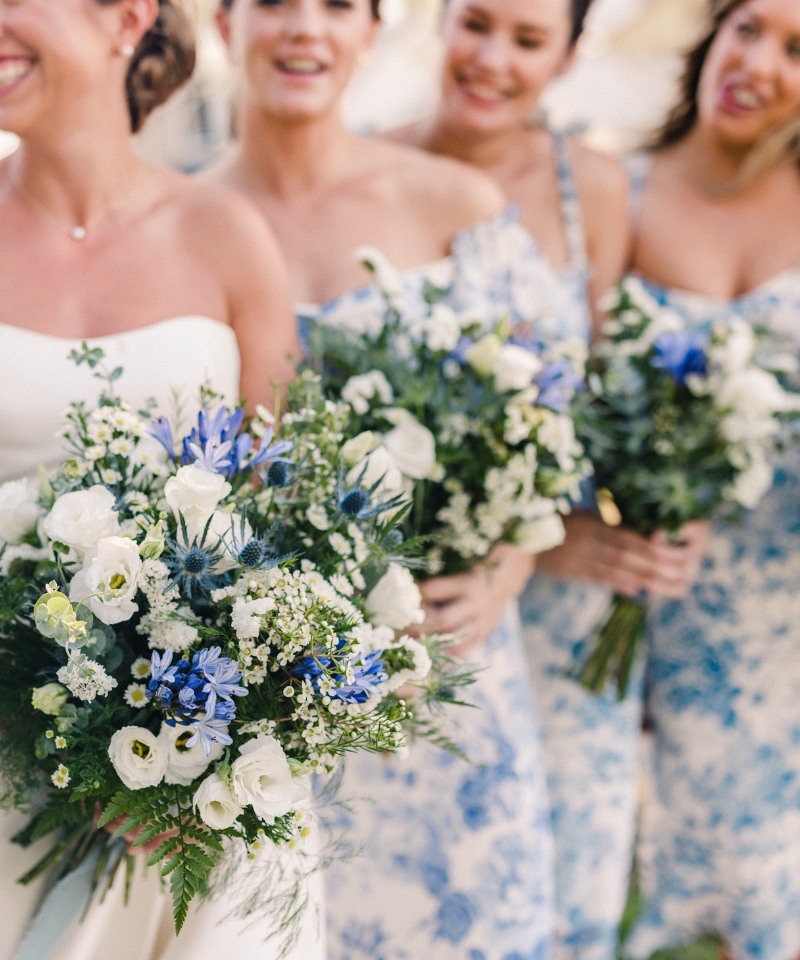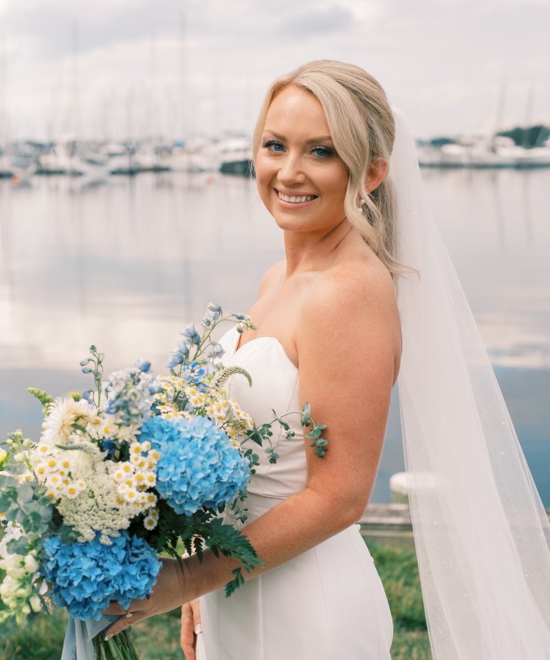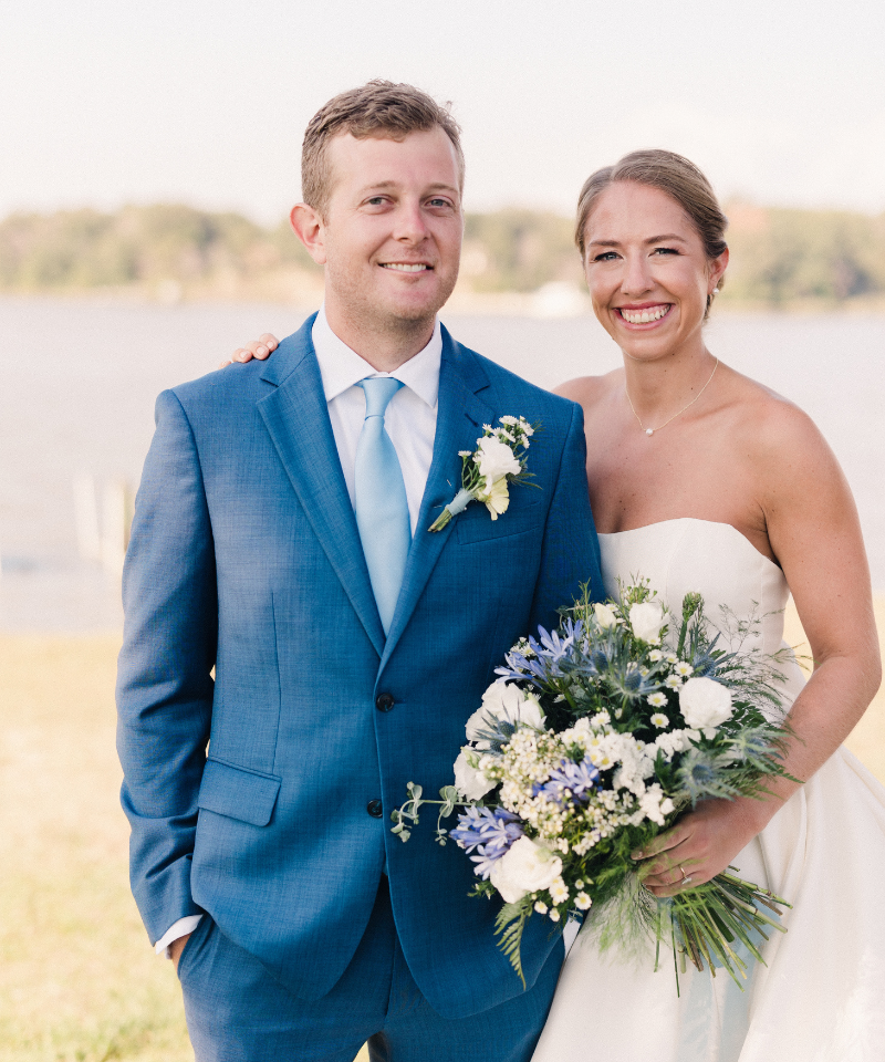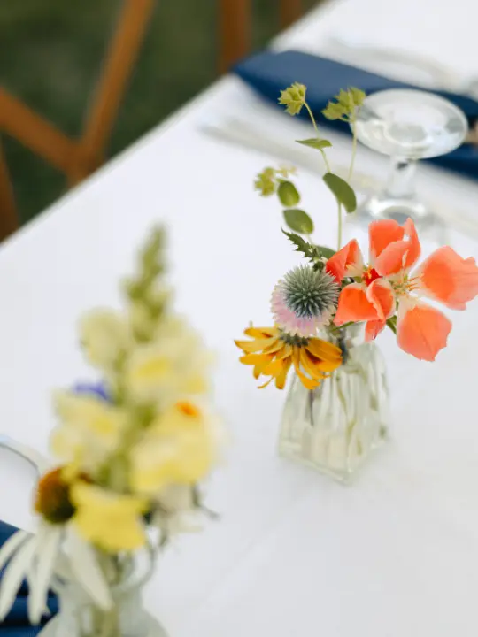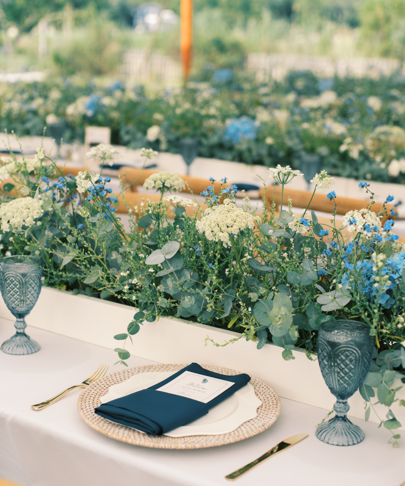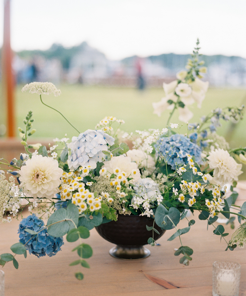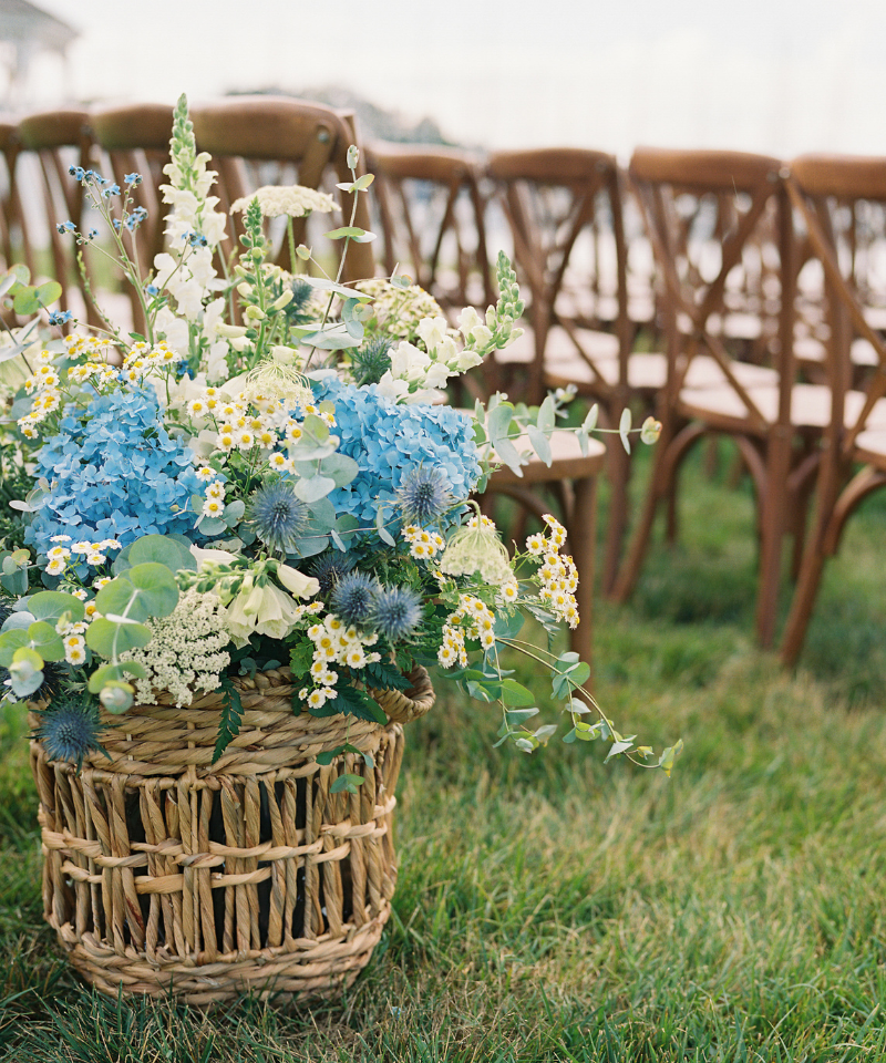A summer wedding in Maryland just calls out for blue and white flowers! This classic theme really fits the many waterfront venues in our area on the Eastern Shore, and can easily branch out to be more personalized with accents of sea glass, driftwood, or pops of a singular color. Our farm grown eryngium, forget me nots, hydrangeas, lupines, baptisia, and salvia bring the blues, while zinnias, gomphrena, strawflower, cosmos, hydrangeas, feverfew, lisianthus and dahlias provide the crisp white!