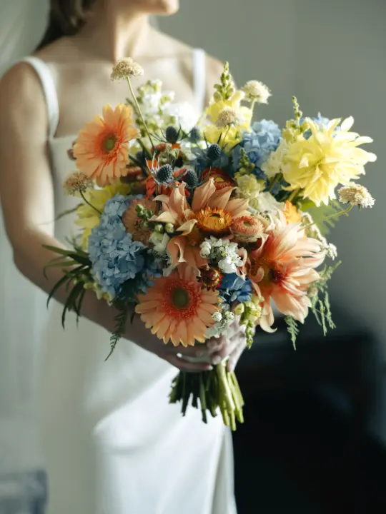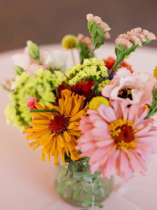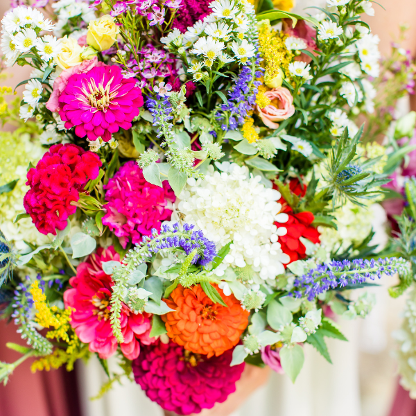 Although every season has its bright colors, summer weddings absolutely SHINE in a bright and wild color palette! Like running through a wildflower landscape, our curated collection of vibrant blooms covers all shapes, sizes, and textures. Whether you choose a wildflower wedding in a full rainbow of color, or a more selective spectrum, our cosmos, veronica, zinnias, sunflowers, dahlias, eucalyptus, celosia, godetia, snapdragons, verbena, solidago, marigolds, and more are there to make your floral dream come true!