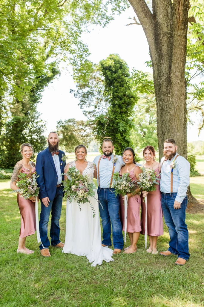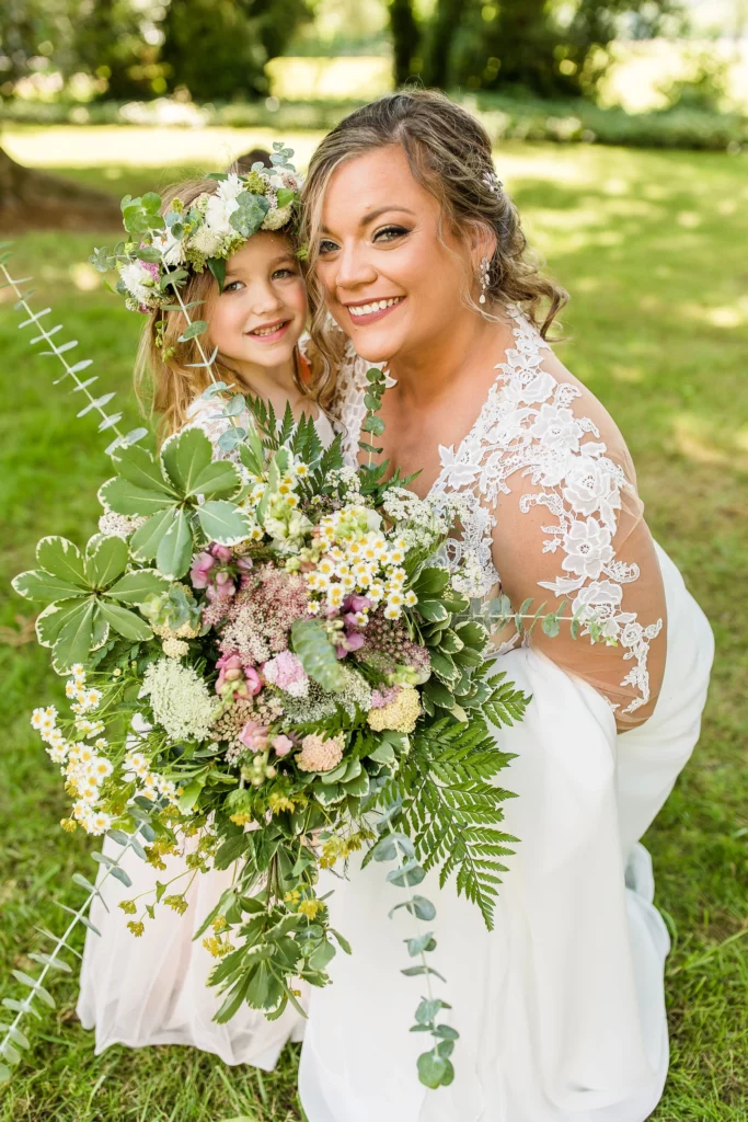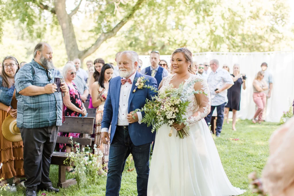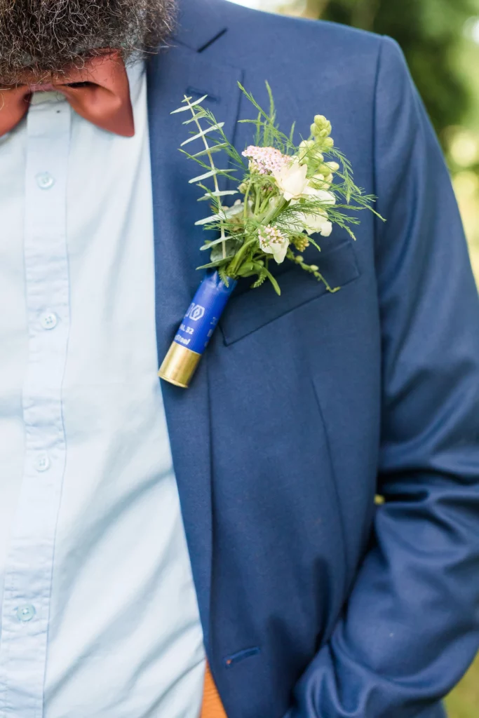 She had a lot of fun pieces involved in her wedding – starting with adorable flower girl crowns and our new favorite aisle décor! To get the look of flowers growing right at the edge of each row, we sunk a water tube into the ground and filled each with lots of fresh cut blooms. They are easy to pull back out afterwards!