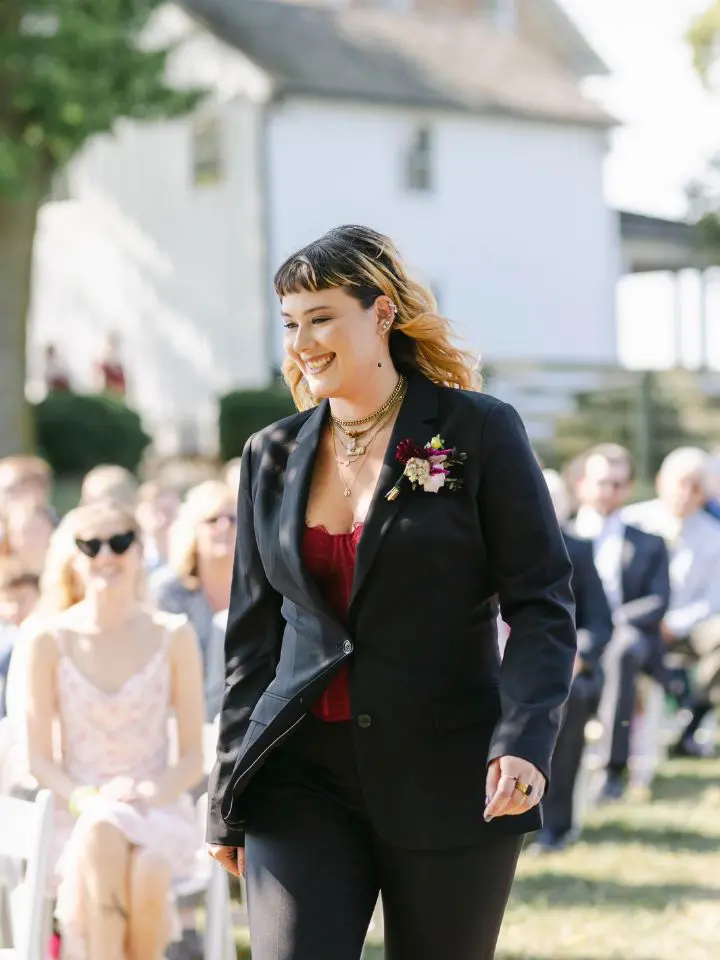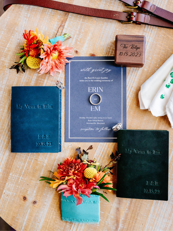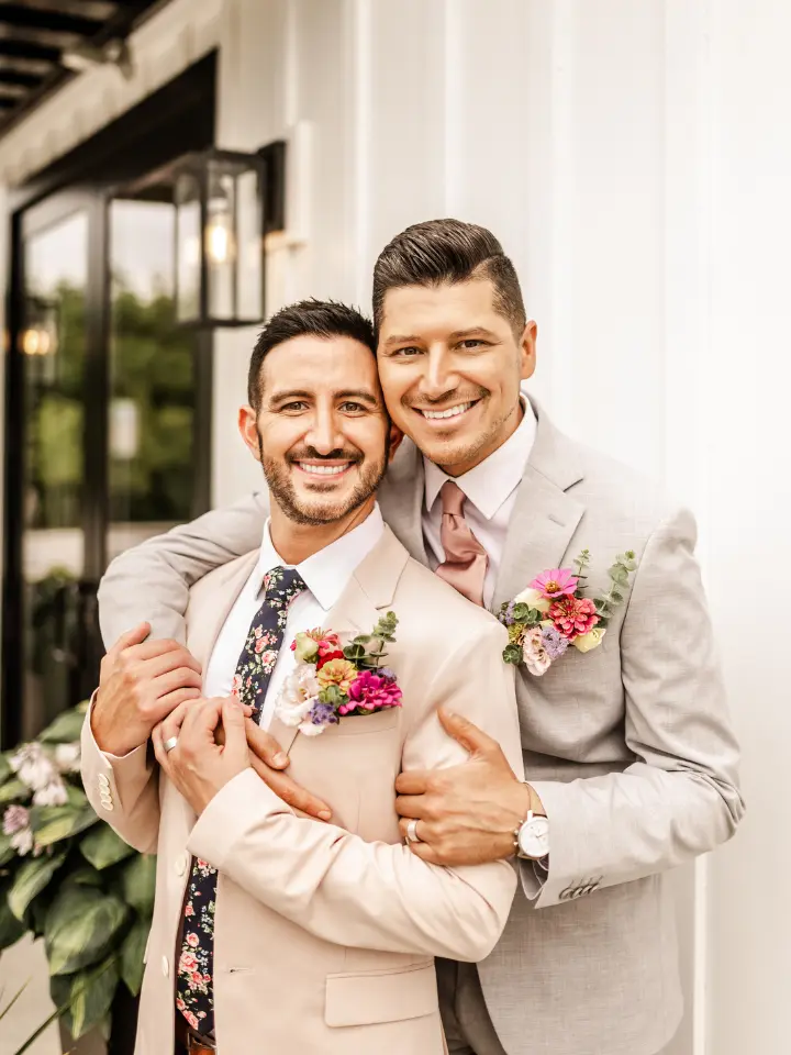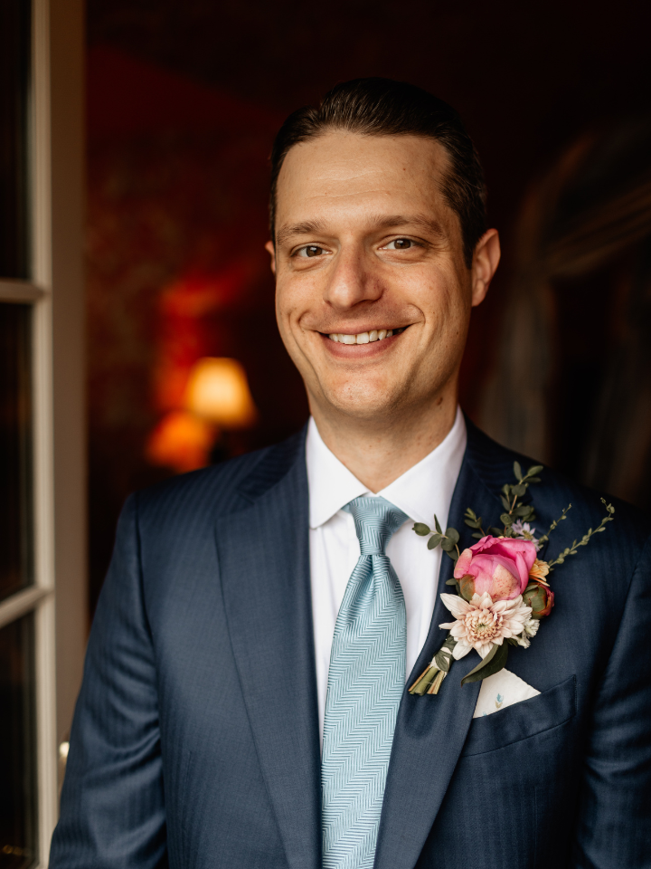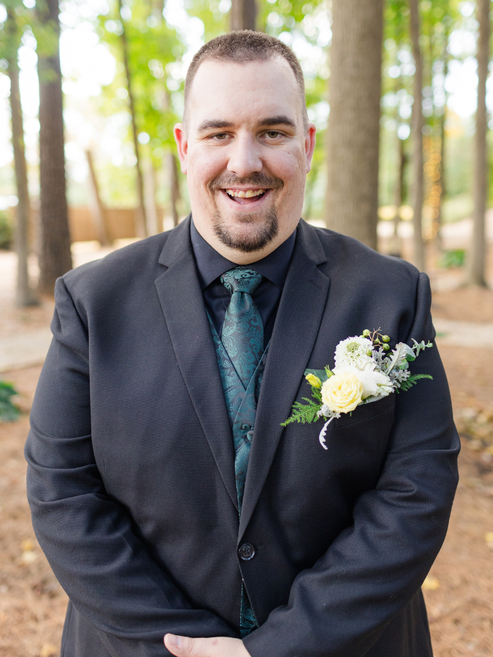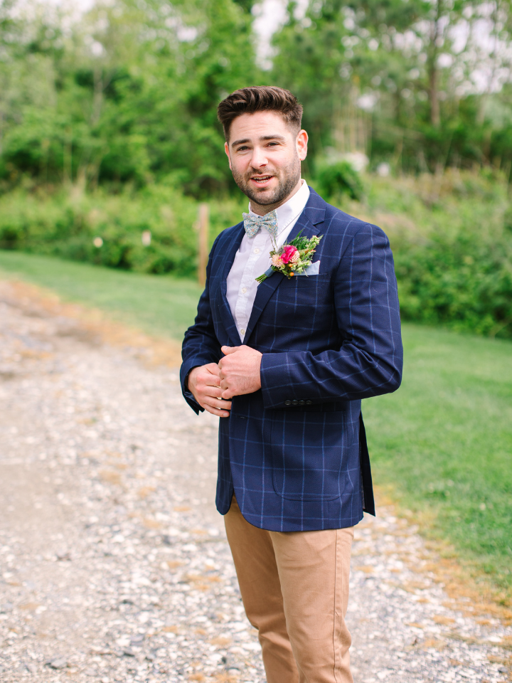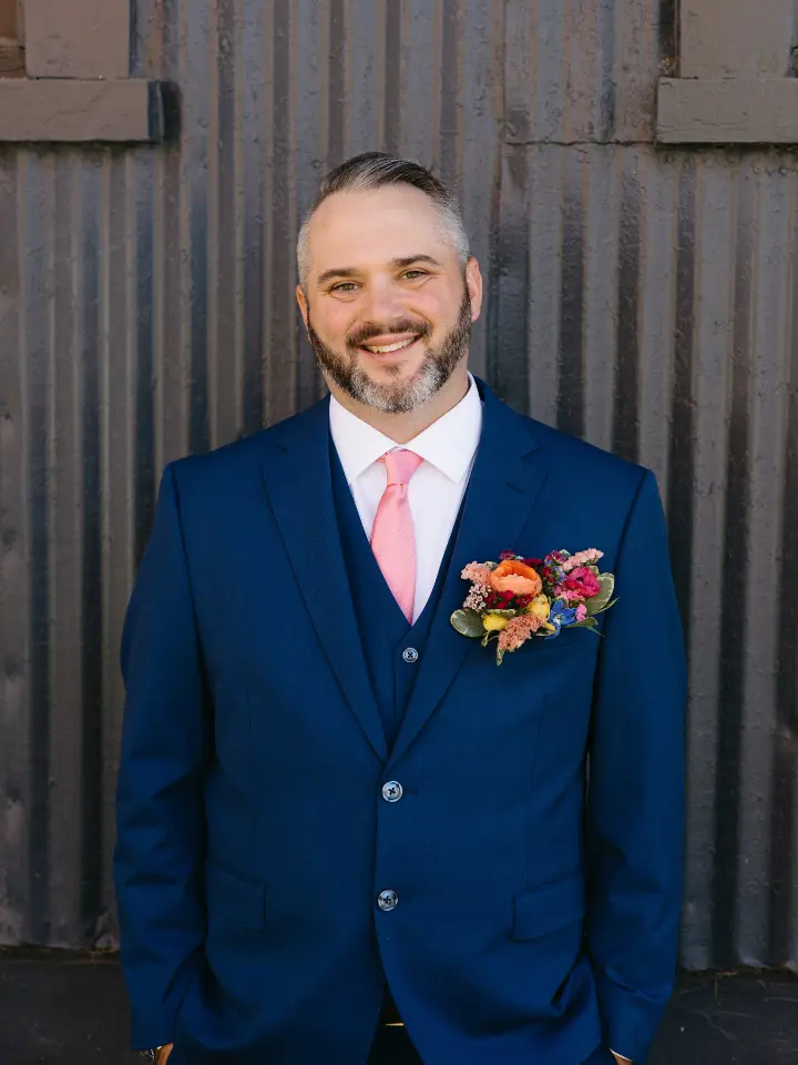 A popular, non-traditional option! In this case we provide a boutonniere that slides into the pocket of the jacket to resemble a floral “pocket square”!