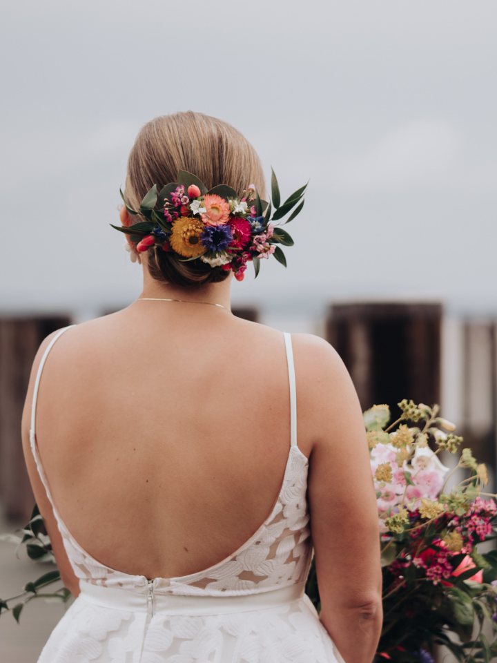 Whether you’re envisioning a boho bridal look, a garden-inspired vibe, or something soft and timeless, our custom floral accessories are tailored to complement your hairstyle and overall wedding aesthetic. Browse our gallery for inspiration and see how real brides have worn their one-of-a-kind creations.