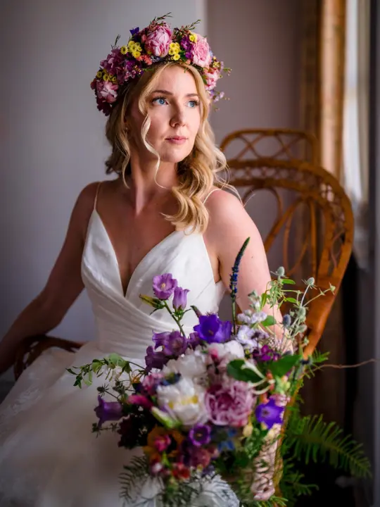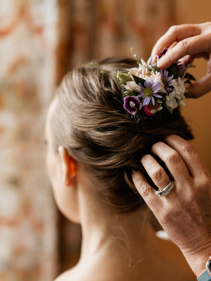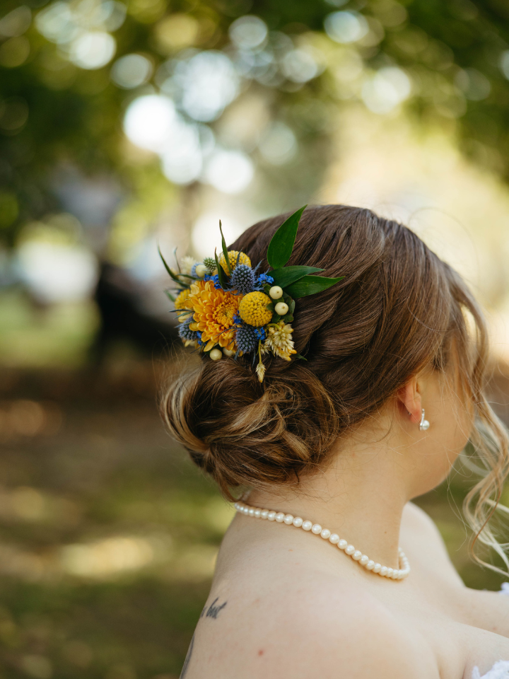 At Wildly Native Flower Farm, our floral hair pieces are a romantic and natural way to elevate your wedding day style. From delicate flower crowns and whimsical hair vines to elegant combs and fresh bloom pins, each piece is thoughtfully designed using locally grown, seasonal flowers.