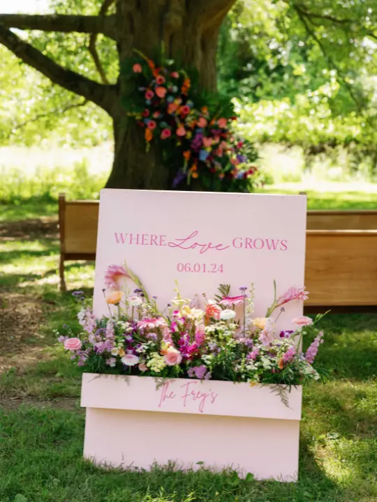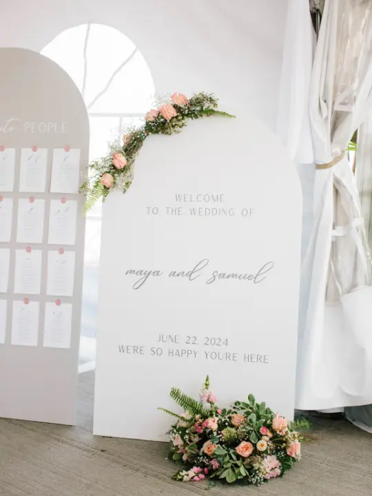 Beyond tablescapes, your reception might also include signage florals and even greenery installations!